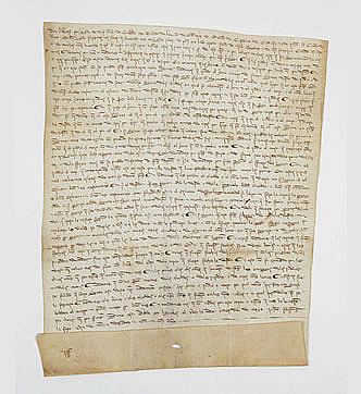Alfonso X se dirige al concejo de Alba de Tormes para comunicarle la forma en que deben ser hechos los préstamos con usura y los empeños. Según esta orden regia estaba prohibida la usura a los cristianos, y los judíos y musulmanes podían prestar pero a un interés que no excediera `de a tres por quatro´. `Era de mille e dozientos e novaenta e ocho annos´ |